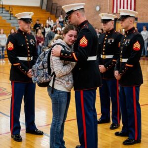 My 14-Year-Old Got Detention for Defending Her Marine Dad – When Four Men in Uniform Walked Into the School, the Entire Building Went Silent