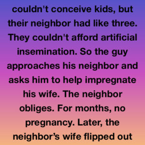 There was once a couple who had tried everything to conceive a child, but nothing seemed to work. Desperate and out of options, the husband noticed that…