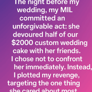 Madison’s dream wedding took a disastrous turn when her meddling mother-in-law devoured half of the couple’s $2000 custom cake the night before the big day. Instead of…