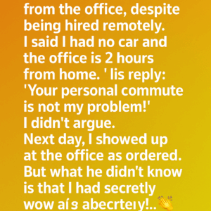 When my boss suddenly announced I had to start working full-time from the office despite being hired remotely I explained that I had no car and the…
