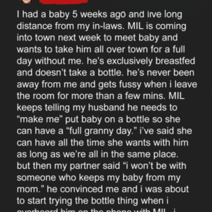 When my baby boy was just five weeks old, my mother-in-law asked for a full day alone with him. She insisted I stop breastfeeding and switch to…