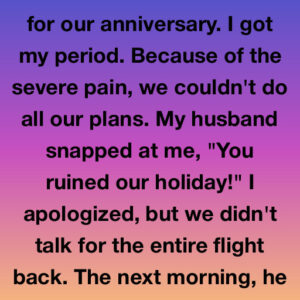 A woman and her husband were celebrating their fifth wedding anniversary at a luxury resort when she unexpectedly got her period, causing severe pain that ruined their…