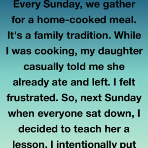 Every Sunday, our family gathers for dinner—a tradition meant to keep us close. One week, my daughter Abby breezed in, mentioned she’d already eaten, and left. It…