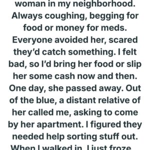 There was an elderly woman in my neighborhood who everyone avoided—frail, wrapped in the same shawl every day, always asking softly for a little food or money…
