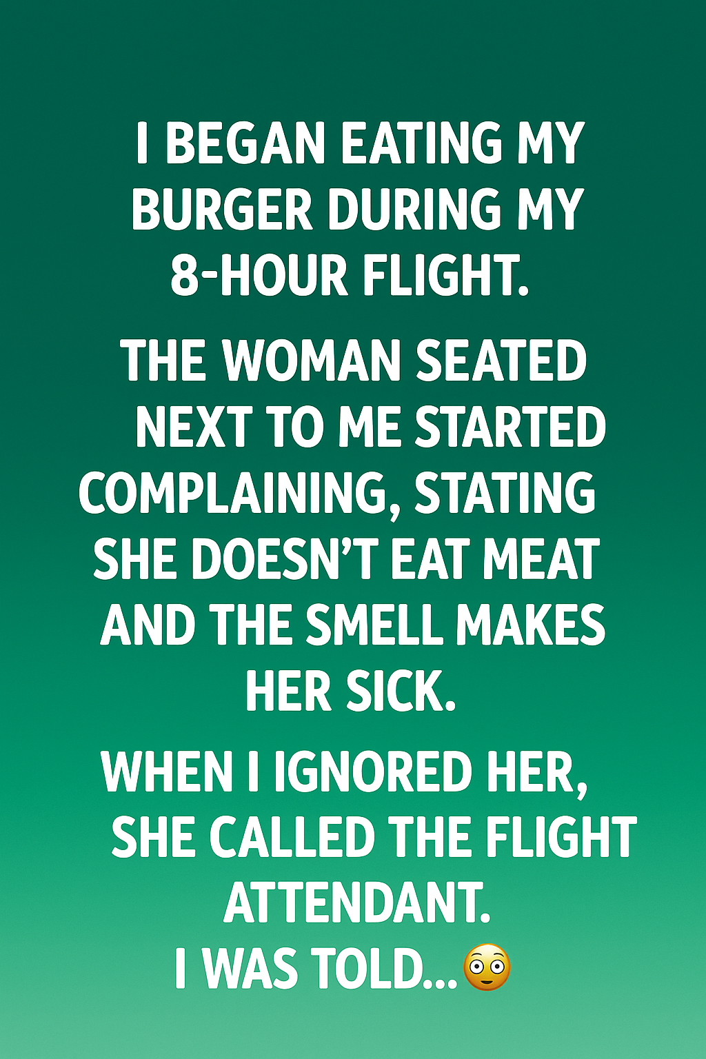 I’m Harassed by the Vegetarian Lady Next to Me for Eating a Burger on the Plane