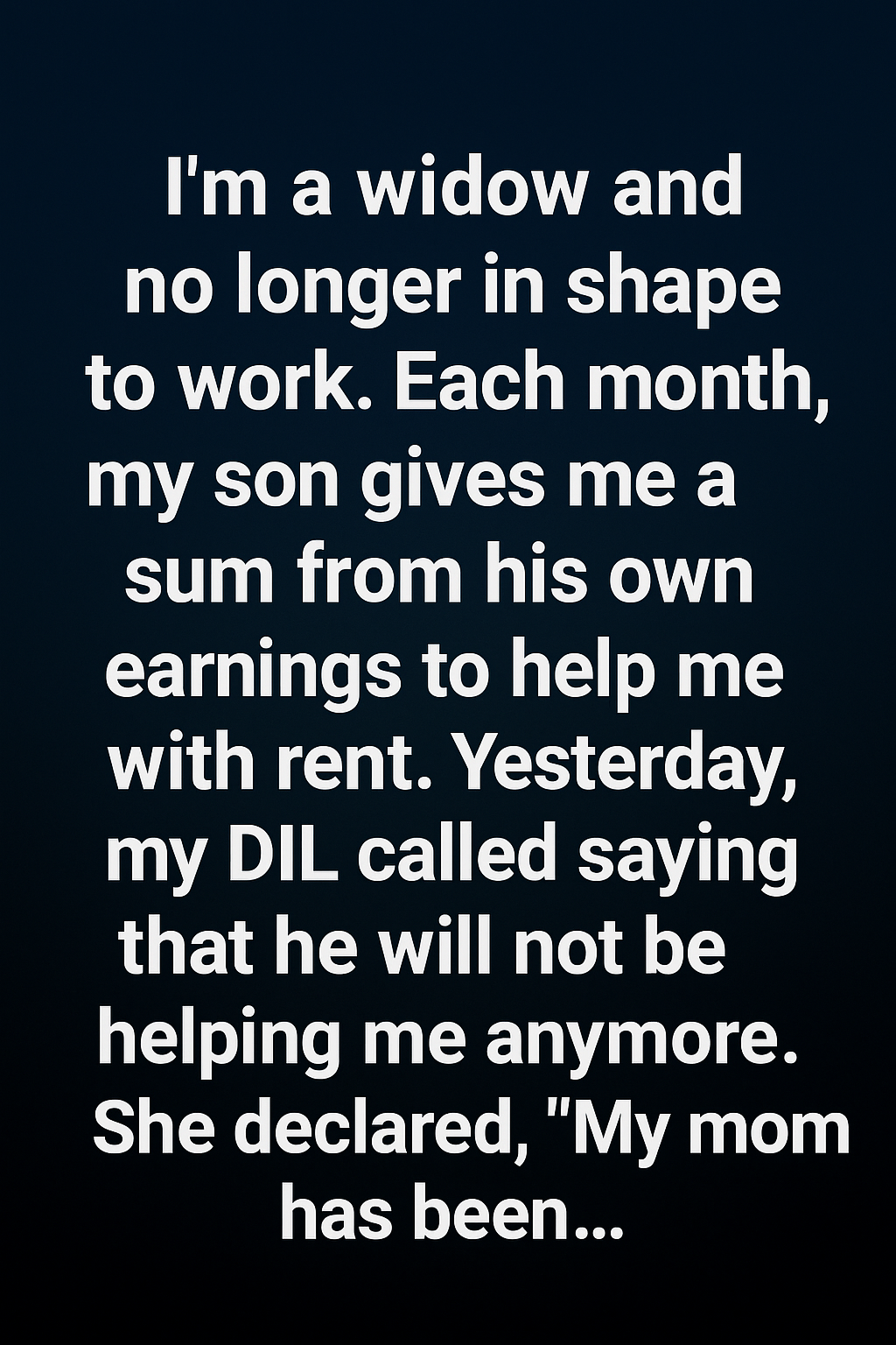Ruth feels deeply hurt after learning that her son has stopped helping her with rent and is instead giving money to his mother-in-law. As a widow living…