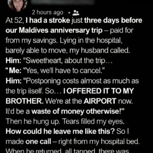 At 52, I had a stroke just three days before our Maldives anniversary trip — paid for from my savings. One moment I was folding laundry and…