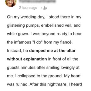On her wedding day, dressed in a white gown and veil, she stood ready to say “I do,” believing she was about to begin a new life…