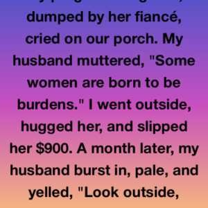 I found my heavily pregnant neighbor sobbing on her porch after her fiancé abandoned her with no money, and despite my husband dismissing her as a “burden,”…