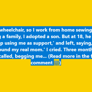 Laura, a wheelchair user who built a quiet life sewing from home, thought adopting a son would complete her world. But when he turned 18, a single…