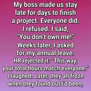 Rachel’s story captures a growing workplace tension between productivity and performative overwork. When her boss demanded late nights to finish a project, she refused—choosing boundaries over burnout—only…