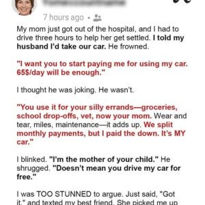 When a woman asks her husband to borrow his car to visit her mother, she is shocked when he demands payment for its use. The story highlights…